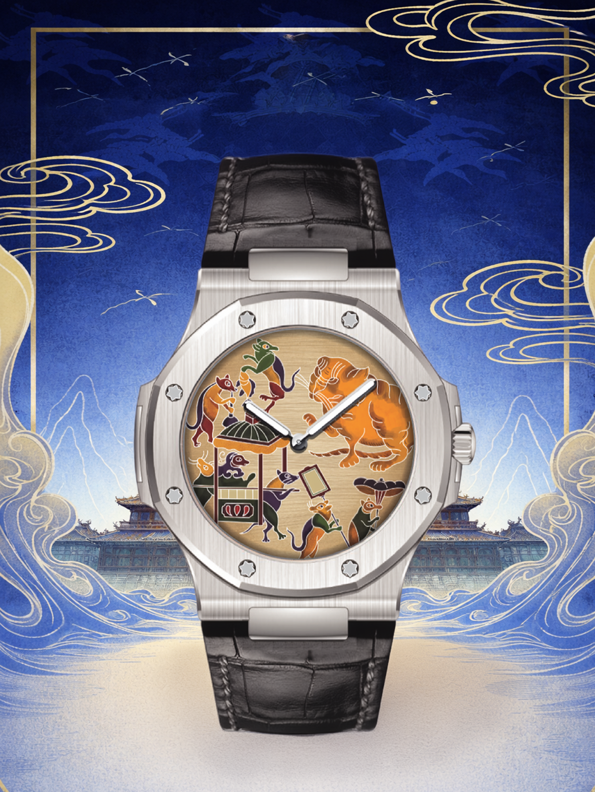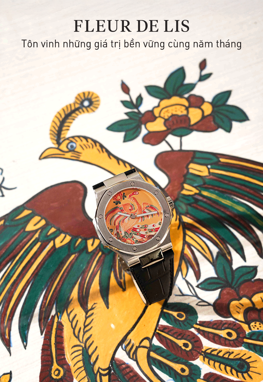 Tinh thần tranh Đông Hồ được tái hiện trên mặt số Pháp Lam thủ công, mang sắc xuân rộn ràng và lời chúc viên mãn, sum vầy. Một tác phẩm nghệ thuật độc bản dành cho những khởi đầu hạnh phúc và giá trị truyền đời.